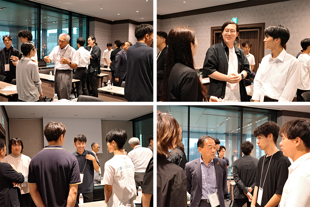 登壇した寄附者や財団関係者の周囲には自然と人だかりができ、進路や研究の相談、講演の続きを深掘りするやり取りが行われていました。また、奨学生たちはそのほとんどがこの日初めて顔を合わせたにもかかわらず、研究や進路、学生生活や趣味に関する話を語り合っていました。会場は終始、和やかで活気ある空気に包まれました。