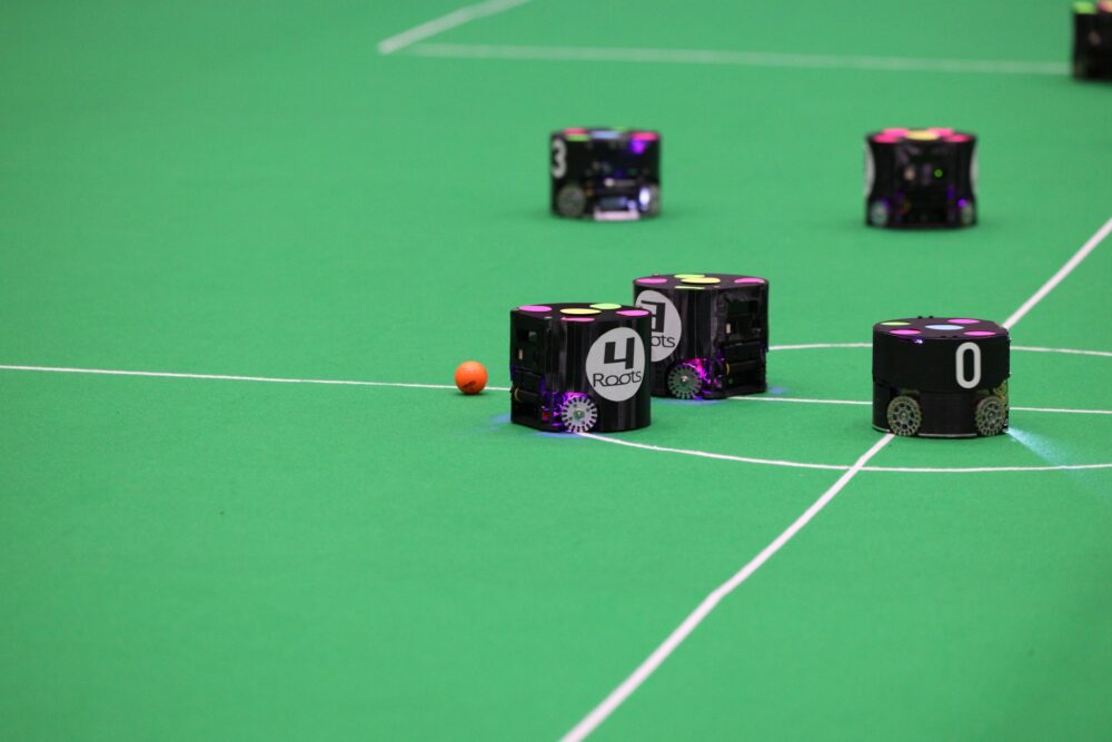 ロボコン引退後の4年生のとき、RoboCupに取り組む先生と出会い、面白そうだと感じてその研究室に入りました。なかでも私が取り組むことになったRoboCup Soccer SSL(小型ロボットによるサッカー競技)は、ルールが固定され、毎年機体や戦術をブラッシュアップしていく競技で、ゼロから作るロボコンとは違う魅力があります。関わっていたチームにはパス機能に相当するコードがなかったため、研究としてパスアルゴリズムの開発を任されました。