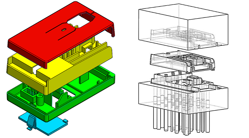 テーマはプラスチックの射出成形を前提とした製品設計でした。射出成形は溶けた樹脂を金型に流し込み、冷えて固まってから型から取り出す製法です。3Dプリンタのように、どんな形状も実現できるというわけではなく、抜き勾配(型から抜きやすくするために設ける傾斜)やアンダーカット(型の単純な開閉だけでは実現できない形状)など、成形上の制約を強く意識する必要がありました。設計の理想形を描くだけではなく、製造方法が設計自由度の上限を規定するという現実を実感しました。
