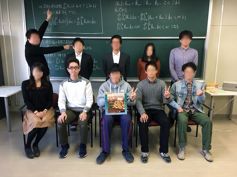 ゼミでは解析学の本を中心に読み進めていました。証明も非常に回りくどく、初めはまったく理解できませんでした。それでも粘り強く読み続け、自分なりに噛み砕いて別の証明方法を組み立て、指導教員や先輩に見てもらうと「この方がわかりやすい」と言ってもらえることがありました。数学は解き方が一つではないと頭では理解していましたが、それを実体験できたことはとても大きな発見でしたね。先生には同時に、大学院進学を見据えて、個人枠として別の解析学の本も読んでいただき、議論を重ねました。