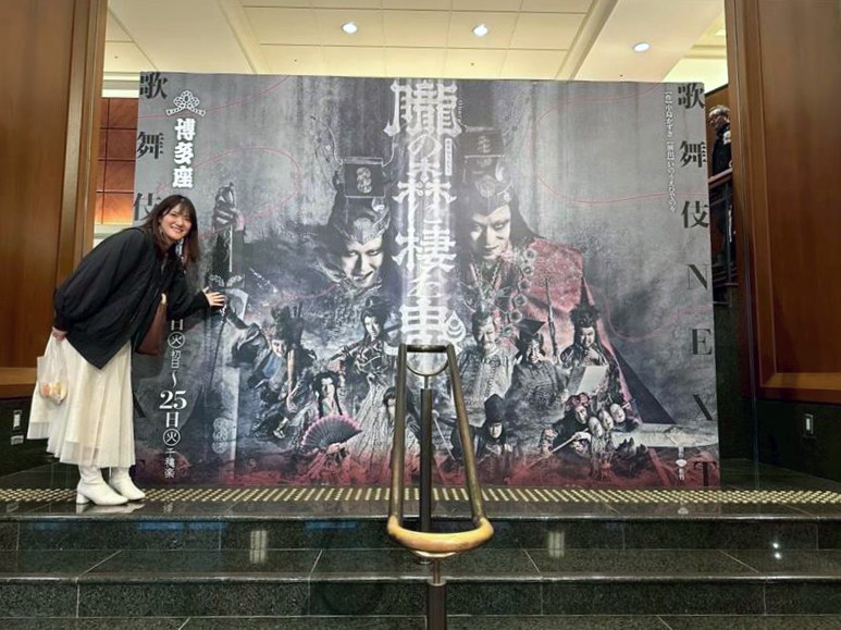 ▲博多座にて歌舞伎NEXT『朧の森に棲む鬼』を観劇したときの1枚。ストレートプレイやミュージカル、最近では歌舞伎まで、幅広く芸術鑑賞を楽しんでいるそうです