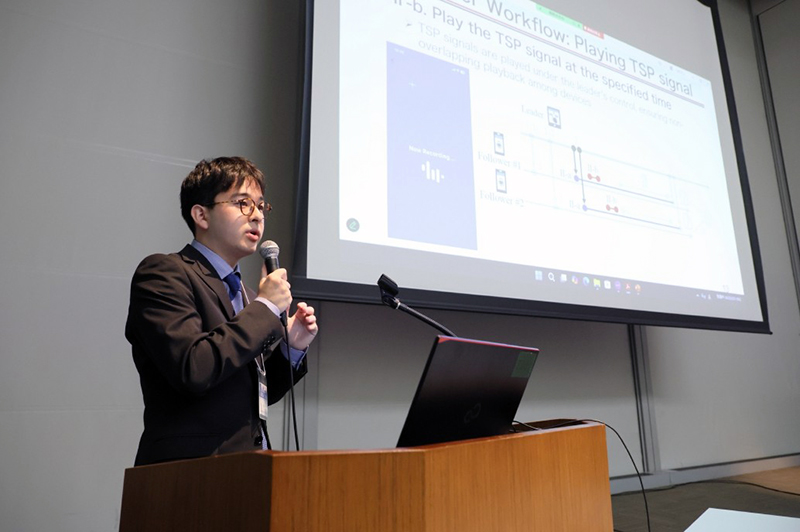 具体的には、スマートホンやタブレットなど、身の回りにある端末をマイクロホンとして複数用いて録音し、録音データを連携させる「アドホックマイクロホンアレイ」という仕組みの研究です。複数の機器で録音することで、特定の人の声だけを強調したり、雑音を抑えたりすることが可能になります。例えば、持ち寄った端末で会議の議事録が自動作成されるシステムや、工場で異常音を検知できるなど、様々な分野への応用も期待されています。